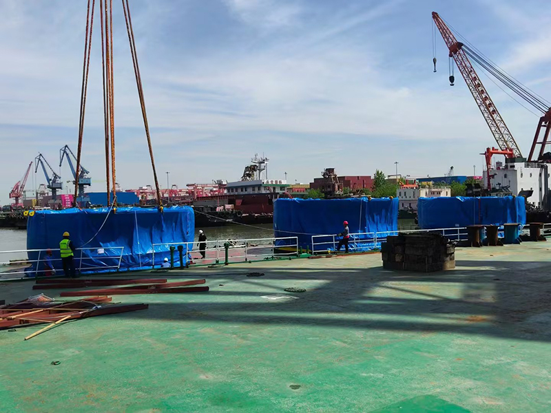 | CMEC承接荷兰TMS公司设计松大生产的风电发电桩柱海上运输工具桩塞今天顺利装船发运,前往荷兰 |